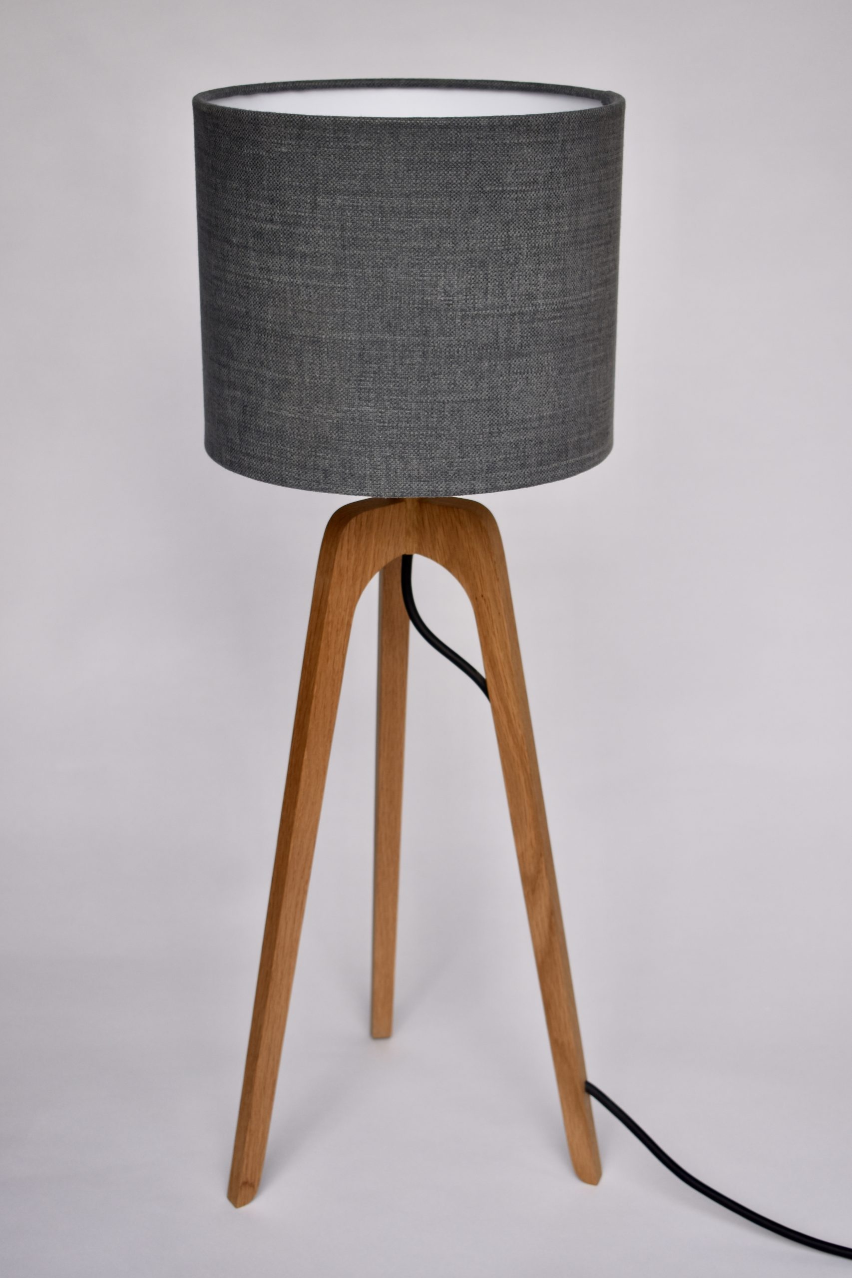 Crafted from solid oak, the Trident wood table lamp stands approximately 730mm tall and brings a calm, balanced presence to any surface. Designed with simplicity and function in mind, it features precision-machined brass hardware, a toughened black flex, and a fully wired fitting—ready to use straight out of the box for U.K. customers. Each lamp is finished by hand using a natural oil blend that enhances the grain of the oak while keeping it non-toxic, low-sheen, and durable. The Trident is practical as well as stylish, designed to work effortlessly within modern and traditional interiors. It ships in custom packaging, with all materials 100% recyclable. To see more wooden lamps and lighting in our collection click here